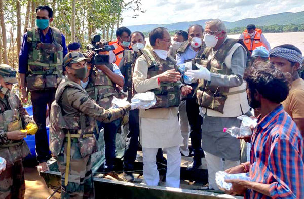 मुख्यमंत्री श्री चौहान नाव से पहुँचे बाबई के बाढ़ प्रभावित बालाभेंट ग्राम