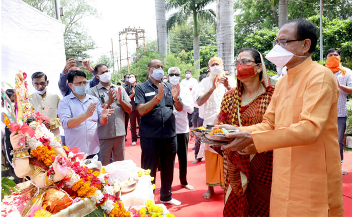 मुख्यमंत्री श्री चौहान ने निवास पर निर्मित जल कुण्ड में किया श्रीगणेश प्रतिमा का विसर्जन