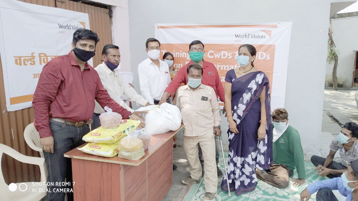 कोरोना संक्रमण से बचाव हेतु दिव्यांगजनों को आवश्यक सामग्री वितरीत