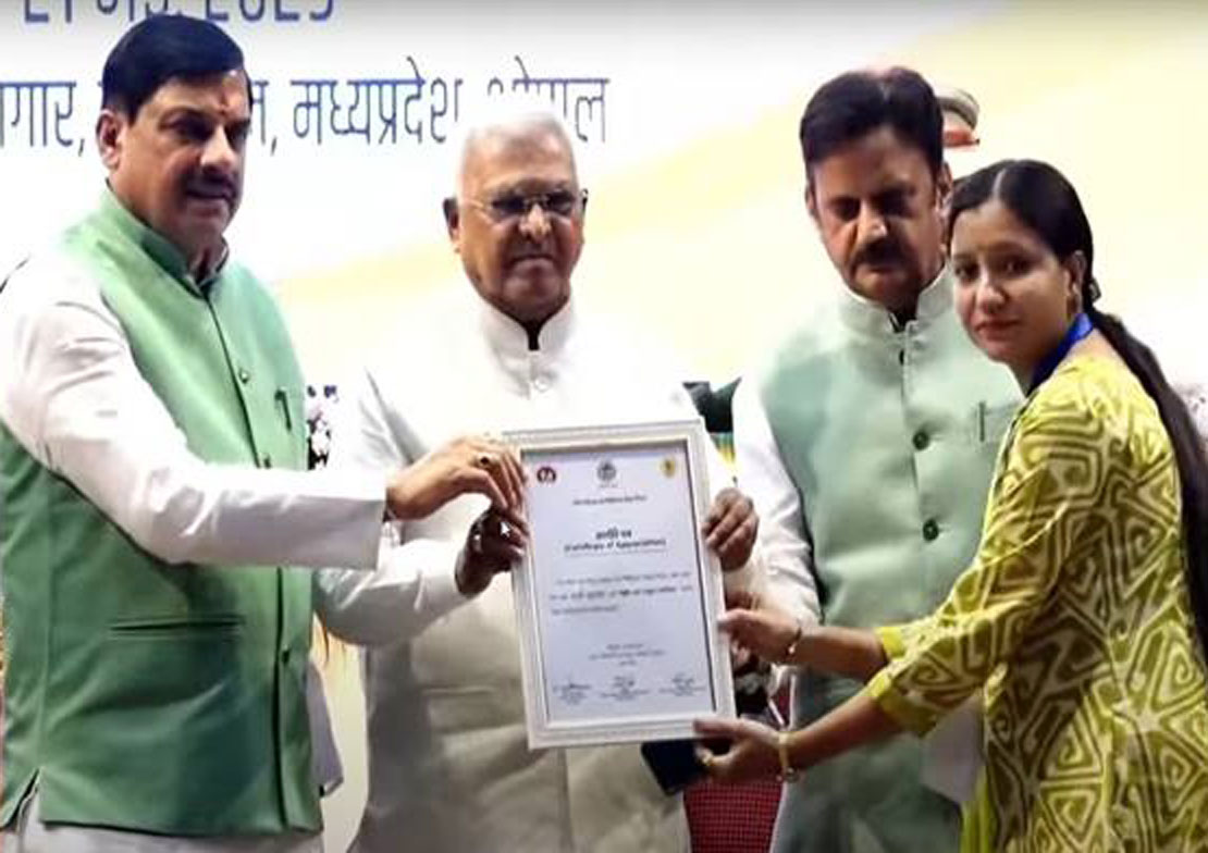 राज्यपाल श्री मंगुभाई पटेल ने लैब टेक्नीशियन श्रीमती सुषमा शर्मा को किया सम्मानित