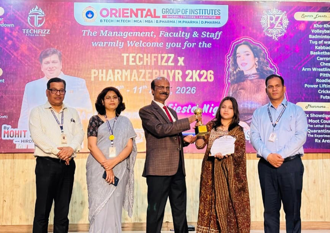 भोपाल : ओरिएंटल ग्रुप ऑफ इंस्टीट्यूट्स द्वारा आयोजित “TechFizz x Pharmazephyr 2K26” के valedictory ceremony (समापन समारोह) 10 अप्रैल के…