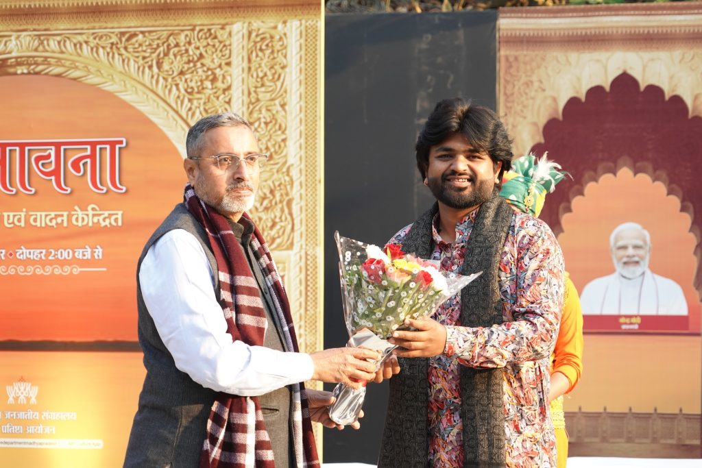 भोपाल। मध्यप्रदेश जनजातीय संग्रहालय में नृत्य,गायन एवं वादन पर केंद्रित गतिविधि “संभावना” अंतर्गत 30 दिसंबर, 2025 से 01 जनवरी, 2026 तक प्रतिदिन दोपहर 02 बजे से संयोजन किया गया है। गतिविधि की शुरूआत कलाकारों के स्वागत से की गई। कलाकारों का स्वागत जनजातीय लोक कला एवं बोली विकास अकादमी, निदेशक डॉ. धर्मेंद्र पारे द्वारा किया गया। गतिविधि में सुश्री अंजली सिंह एवं साथी, रायबरेली द्वारा आल्हा गायन में महोबा के इतिहास की प्रस्तुति दी। अगले क्रम में सुश्री कल्याणी मिश्रा एवं साथी, रीवा द्वारा बघेली लोक गायन किया गया। उन्होंने गणेश-शिव भजन, बनरा, सुहाग, गारी का गायन किया। वहीं श्री जयदीप गढ़वी एवं साथी, जूनागढ़ द्वारा गढ़वी गायन की प्रस्तुति दी।