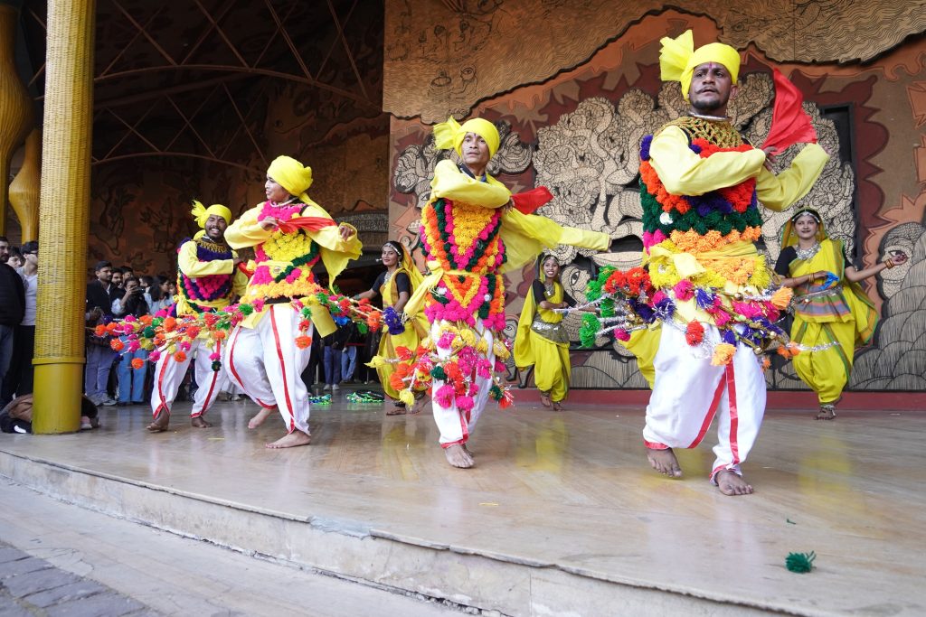 भोपाल। मध्यप्रदेश जनजातीय संग्रहालय में नृत्य,गायन एवं वादन पर केंद्रित गतिविधि “संभावना” का आयोजन किया जा रहा है, जिसमें 04 जनवरी, 2026 को श्री राहुल भावर एवं साथी, धार द्वारा भील जनजातीय भगोरिया नृत्य एवं सुश्री कविता पाण्डेय एवं साथी, जबलपुर द्वारा बुन्देली बधाई नृत्य और श्री महेश कुलश्रेष्ठ एवं साथी, आगर द्वारा कबीर गायन की प्रस्तुति दी गई।