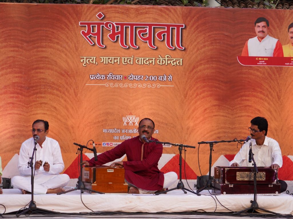 भोपाल। मध्यप्रदेश जनजातीय संग्रहालय में नृत्य,गायन एवं वादन पर केंद्रित गतिविधि “संभावना” का आयोजन किया जा रहा है, जिसमें 30 मार्च 2025 को बधाई नृत्य श्री राजेश चौरसिया एवं साथी- सागर, अखाड़ा देवेन्द्र डेहेरिया एवं साथी सिवनी,कबीर गायन नमन तिवारी एवं साथी- नर्मदापुरम द्वारा प्रस्तुति दी गई।