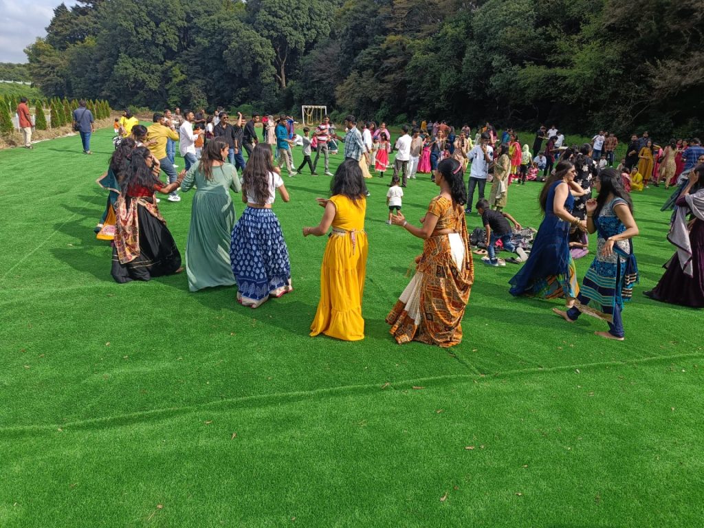 गरबों की धूम जहां भारत के हर राज्य का प्रतिनित्व करते पुरुष एवं महिलाएं
