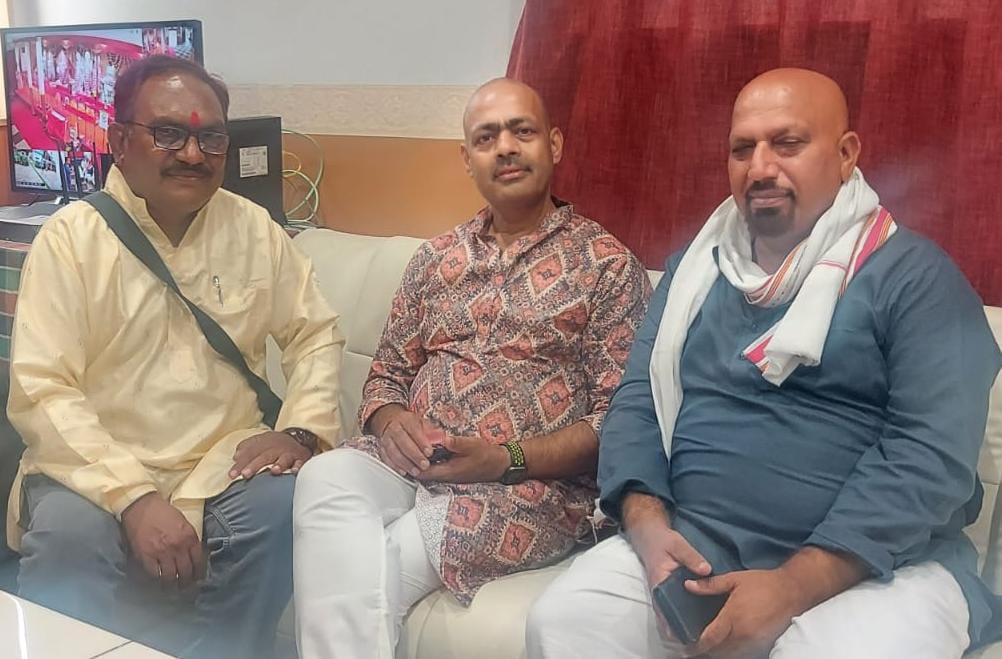 इन सबके सूत्रधार बने बांदो,जापान में निर्मित इस श्रीराम मंदिर के प्रमुख ट्रस्टी मुकेश कुमार सिंह(मध्य में) उनके बाँयी ओर श्री गुलाबराय गंभीर से वार्ता करते हुए रंग संस्कृति के सम्पादक यतीन्द्र अत्रे