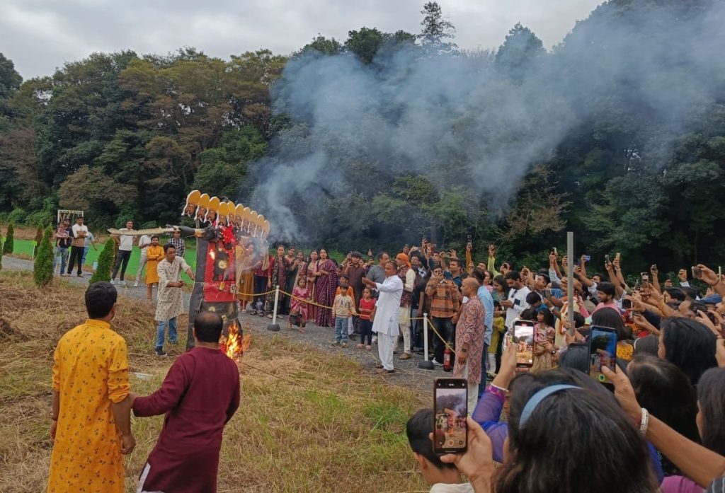 कहा जाता है कि ईश्वर हर जगह मिल सकता है,यानी कि जहां आस्था, विश्वास, मान्यता है वहां ईश्वर को खोजा जा सकता है। लेकिन आस्था के विरुद्ध बुराईरूपी रावणों की संख्या भी तो दिन प्रतिदिन बढ़ती जा रही है,संभवतः इसीलिए बारिश के बाद हम अपने निवास स्थान की रंगाई पुताई करते हैं l प्रतिवर्ष दशहरा और दीवाली जैसे पर्वों पर प्रवचन एवं सकारात्मक विचारों के आदान प्रदान से बुराइयों के प्रतीक रावण का दमन करते आए हैं। मुझे याद है जब मेरी जापान यात्रा आरंभ होनी थी उसी समय विनय भाई (प्रसिद्ध उद्घोषक एवं कला समीक्षक) श्रीलंका यात्रा के लिए निकलने वाले थे मैंने उन्हें शुभकामनाएं प्रेषित की, प्रति उत्तर में उन्होंने मेरी जापान यात्रा पर खुशी जाहिर करते हुए कहा- जो जहां हो वहीं के रावण का दमन करें… कवि, साहित्यकार हो या समीक्षक उनके शब्दों में जादू होता है उनके द्वारा सहजता में कही गई बात में भी गूढ़ अर्थ छुपा होता है। अब यह तो पुरानी कहावत है कि जहां न पहुंचे रवि वहां पहुंचे कवि,यानी कि कवि महोदय कभी कभी ऐसे अनछुए विषयों की गहराई तक पहुंच जाते हैं जहां सूरज की किरणें भी ना पहुंच पाए…हालांकि यह तो रही कहावत, लेकिन यह तो मानना होगा कि ढूंढने जाएंगे तो आज विश्व के हर कोने में भारतवासी मिल जाएंगे और यकीन मानिए जनाब वे सभी वहां अपना समूह बना एक छोटा भारत बनाने की जुगत कर रहे होंगे।विदेशों में जहां भारतीय त्योहारों के लिए छुट्टी नहीं होती हैं वहां सप्ताह के अंत पर ही त्यौहार मनाने का चलन होता है l ऐसे ही दशहरे के बाद के रविवार को दशहरा पर्व के उपलक्ष में एक भारतीय समूह के साथ उत्सुनोमिया शहर से रावण का दमन करने हम लोग निकले। लेकिन रास्ते में मेरे मन में इन सबसे परे एक विचार कौंध रहा था कि, वे व्यक्ति कितने महान होंगे जो कईं समुंदर पार भारतीय त्योहार,भारत की संस्कृति को कायम रखे हुए हैं और अपने देश से हजारों मील दूर श्री राम के भक्त के रूप में अपनी पहचान बना रहे हैं । टोक्यो हाईवे पर लगभग डेढ़ घंटे की दूरी के बाद हमारी कार हाईवे छोड़ एक छोटे किंतु व्यवस्थित गांव बांदो की ओर मुड़ती है, सड़क के दोनों और पत्ता गोभी, बैंगन, नींबू के बड़े-बड़े फॉर्म दिखाई देते हैं और उसके बाद बांदो में प्रवेश, यहां मन को प्रफुल्लित करने वाले कुछ संस्थानों पर भारतीय नाम दिखाई देते है, जिससे यह अनुमान तो हो गया कि यहां अपने वतन के लोगों का प्रतिनिधित्व है l गांव से होते आगे बढ़ते ही कुछ दूरी पर मंदिर की घंटी की मधुर ध्वनि श्री राम के दर्शन की हमारी आतुरता को और बढ़ा देती है। फिर दिखाई दिए हमारे जैसे कईं भारतीय चेहरे जिन्हें हम पिछले कईं दिनों से ढूंढ रहे थे। कुछ लोग मंदिर आने वाले वाहनों की व्यवस्थित पार्किंग करा रहे थे। सबसे पहले प्रभु दरबार 